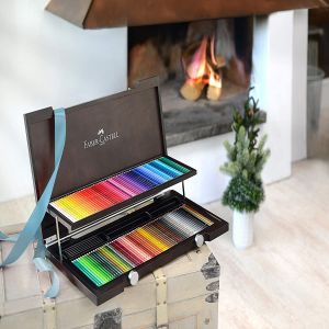 Dürer suluboya kalemlerinin: 120 farklı rengi, metal kutularda 12,24,36,60,120'li setleri 100 rengi kapsayan kaliteli maun ağaç kutusu mevcuttur.